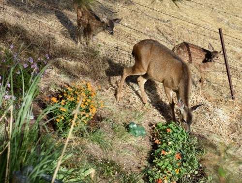Lynn was far less happy when the doe and fawns headed to the nasturtium bed she recently planted, forcing her to start walking up to the deer family before they moved on.