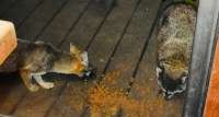 Roof rats on Mitchell cabin’s deck eating leftover seeds scattered for the birds.