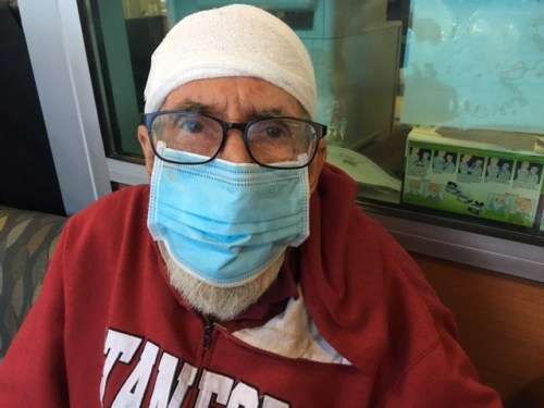 It’s been almost two weeks since my last posting — but not for the usual delays. My apparent turban seen here is, in fact, a wrapping of bandages.