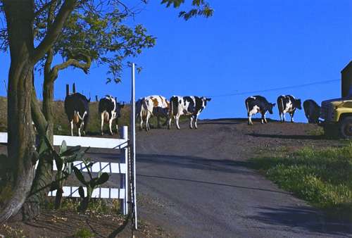 Cows heading toward the milking barn at Steve and Sharon Doughty’s ranch in Point Reyes Station. Of all the photos I’ve shot of West Marin agriculture, this is my favorite (2004).