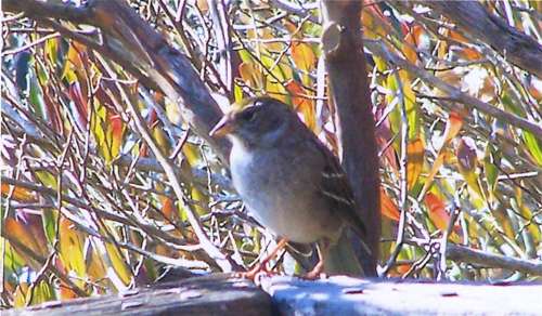 A Golden-crowned sparrow disguised as a stained-glass window, Point Reyes Station (2004).