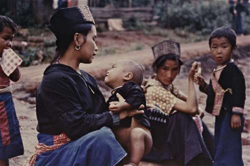 Two mothers and their children in one of Thailand’s semi-isolated hilltribes.