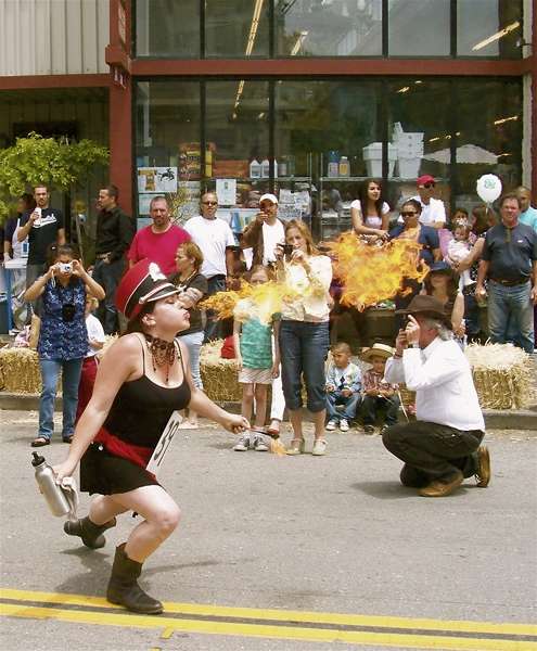 In undoubtedly the most impressive individual showmanship, Bonnie Porter of Inverness blows a kiss of fire. In her day job, she’s a computer techie.