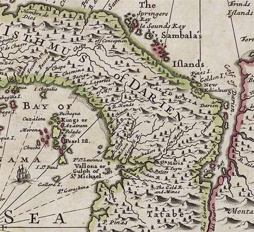 The site of Darien is shown just to the left of the word “Darien” in the “Gulf of Darien” on the right side of this map from 1699.
