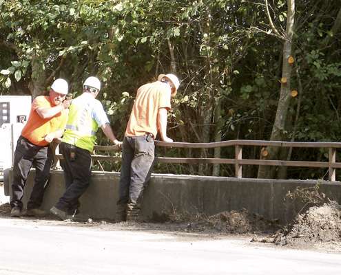 Road supervisor Pete Maendle (left) of Inverness Park this week told me a box culvert under the levee road had become completely clogged with silt. This has sometimes led to a drainage ditch from Silver Hills causing flooding near the White House Pool parking lot.