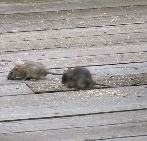 Also enjoying birdseed on my deck are roof rats, which on some evenings show up even before the birds leave.