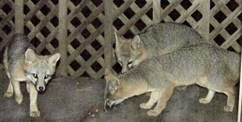 The foxes are usually skittish enough to run off a few feet when I open the kitchen door, but they quickly return.