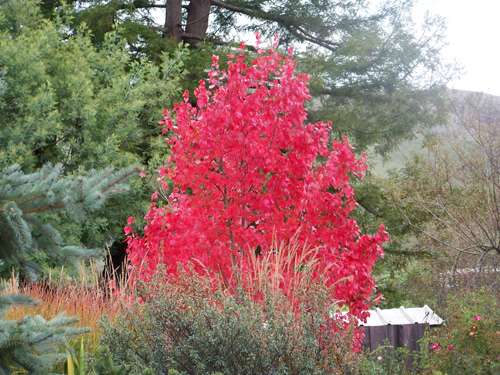 “As I was leaving here, I got to the end of the levee road. At the pumpkinhouse, there is one of the most beautiful red trees you could ever see. Get a picture.”
