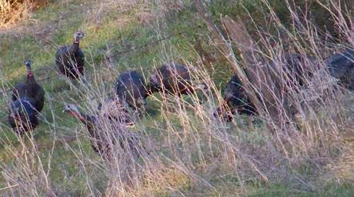One surprising relationship went on for years around this part of town. This peacock was often seen in the company of a flock of wild turkeys. Unfortunately, I haven’t seen the peacock in recent months. I hope it’s okay. (Sad update: Obviously, not all species of wildlife are friendly toward each other, and the day after this posting went online, a neighbor told me a bobcat had killed the peacock.)