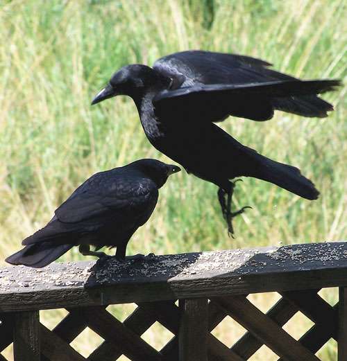 American crows, which are native to North America, are considered intelligent birds. Here, for example, they demonstrate their mastery of jitterbug.