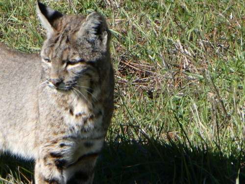 A bobcatmade one of its periodic visits to Mitchell cabin this week. Like the heron, bobcats like to hunt gophers here.