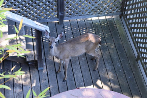 Another fence lizard, also warming itself this week on our railroad-tie front steps, has regrown most of its original tail. The dark section where it broke off can easily be seen. It’s important to male lizards to get their tails back. Female lizards aren’t interested in them until they do.