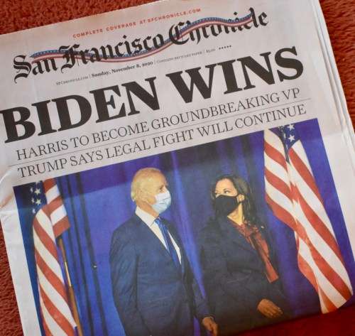 Something many of us said thanks for yesterday occurred in Washington. Donald Trump, who keeps denying he lost the Nov. 3 presidential election, finally said he will leave the White House by Jan. 20 if Democratic president-elect Joe Biden wins the electoral college vote on Dec. 14. Biden racked up 306 electoral college votes three weeks ago and needs only 270 to win. Trump in comparison picked up only 232 votes, which may account for his hair turning gray in the week after the election (see photo in Nov. 19 posting).