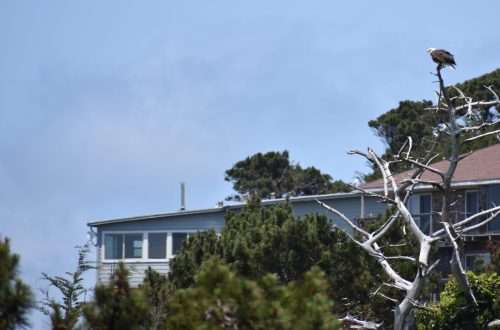 A bald eagle regularly perched in a dead tree near our inn. We were told it had a mate, but we never saw it.