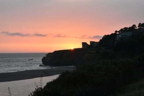 Gualala makes for a romantic getaway, and we’d previously vacationed there a couple of times. The downtown sits beside an ocean bluff at the foot of forested hills. Every year ocean waves restore a sandbar that closes the mouth of the Gualala River. This creates a lagoon that lasts until the next rains swell the river enough that it can burst through the sandbar.