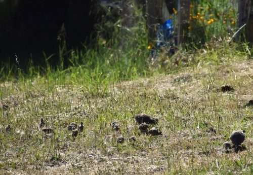 A covey of mostly very young quail greeted us when we returned to Point Reyes Station after being away four days. In fact, young animals of other species had also begun hanging out around Mitchell cabin.