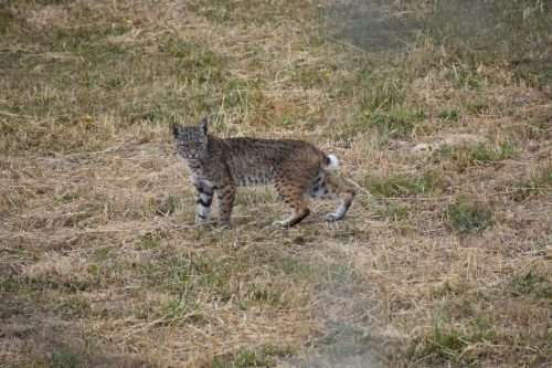 a male bobcat. He was acting pretty much like a male dog: peeing on posts to mark territory and rolling on the ground on his back with his feet in the air. He didn’t chase the rabbit.