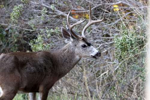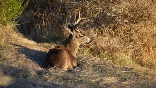 A blacktail buck. My neighbor Dan Huntsman seemed to look this buck in the eye when he photographed it standing between our homes in the sun.