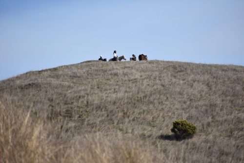 There’s more to the animal life around Mitchell cabin than wildlife. Here student riders with Point Reyes Arabian Adventures circle on a nearby hill.
