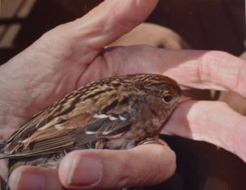 I had opportunities to enjoy both this past week, and at least for entertainment value, the bird in the hand is definitely more interesting. It was the third time recently that I’d had the opportunity to hold a live bird. Our cat Newy catches birds outdoors, brings them indoors as gifts for Lynn and me, and drops them on the floor where they are relatively easy to scoop up by hand.