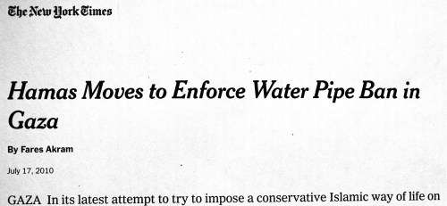 This New York Times headline from 10 years ago still amuses me, for it implied that the Palestinian Authority considers indoor plumbing unacceptable in a Muslim country. As it turned out, Hamas was actually upset with women smoking hookahs.